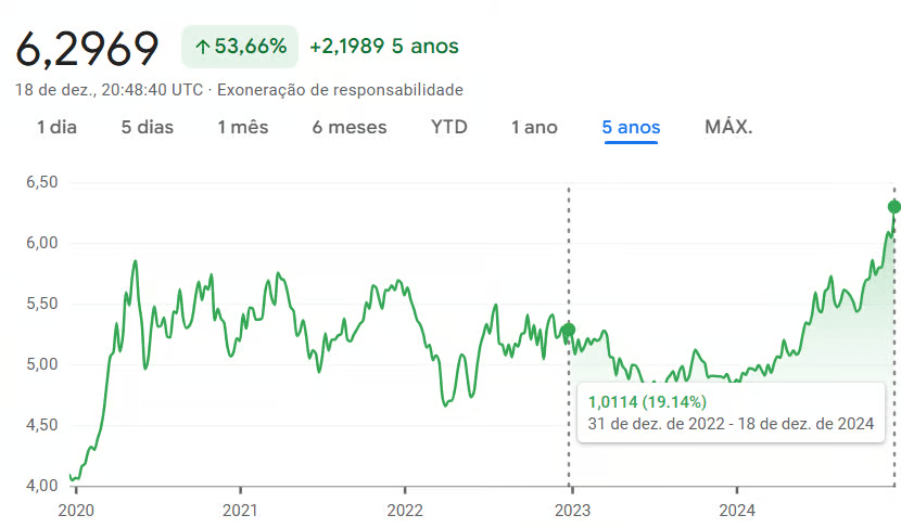 - Mas na terça-feira ele já tinha superado a casa dos R$ 6,20ao longo do pregão, inclusive sendo motivo para uma discussão um tanto quanto peculiar…