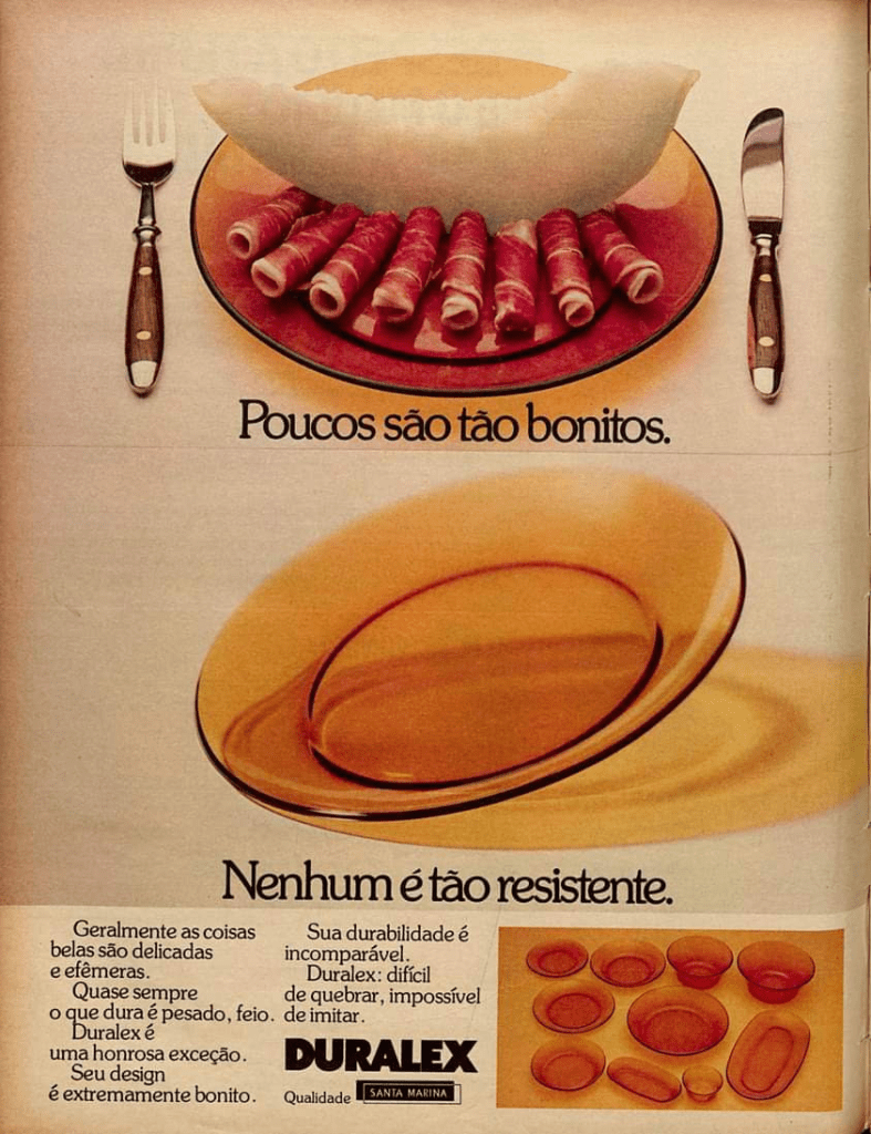 Os moldes e a cor que conhecemos só viriam algum tempo depois, nos anos 70. Com a população passando a buscar ainda mais por produtos com durabilidade, a Duralex criou algo até então inédito para louças…