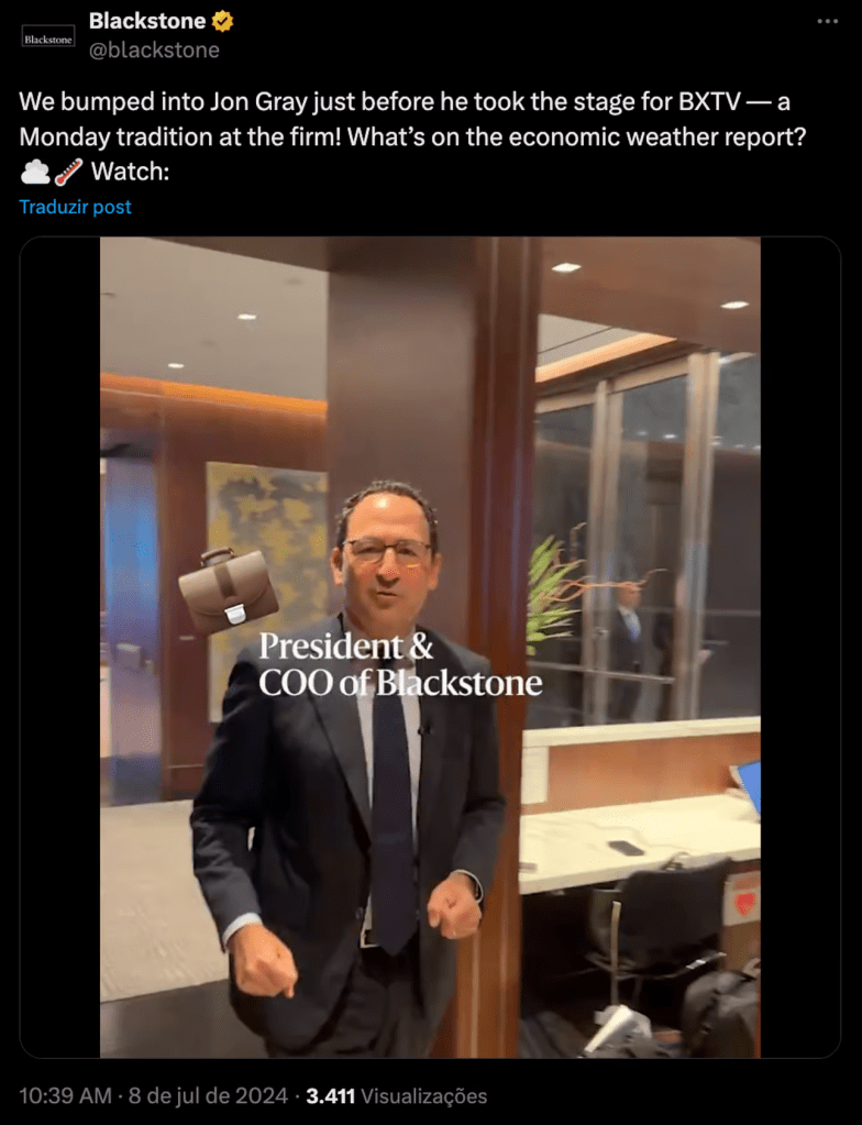 Em busca do engajamento; o presidente da Blackstone, uma das maiores gestoras do mundo, por exemplo, tem feito mini vlogs sobre o dia a dia no escritório. E ele está longe de ser o único a apostar no formato.